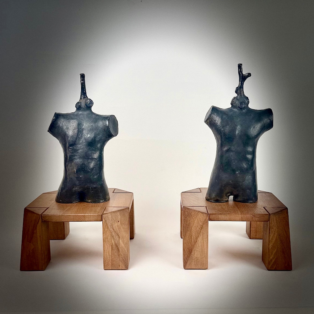 Solid pair of Italian beeech wood art pedestals. Perfect to display sculptures on them.