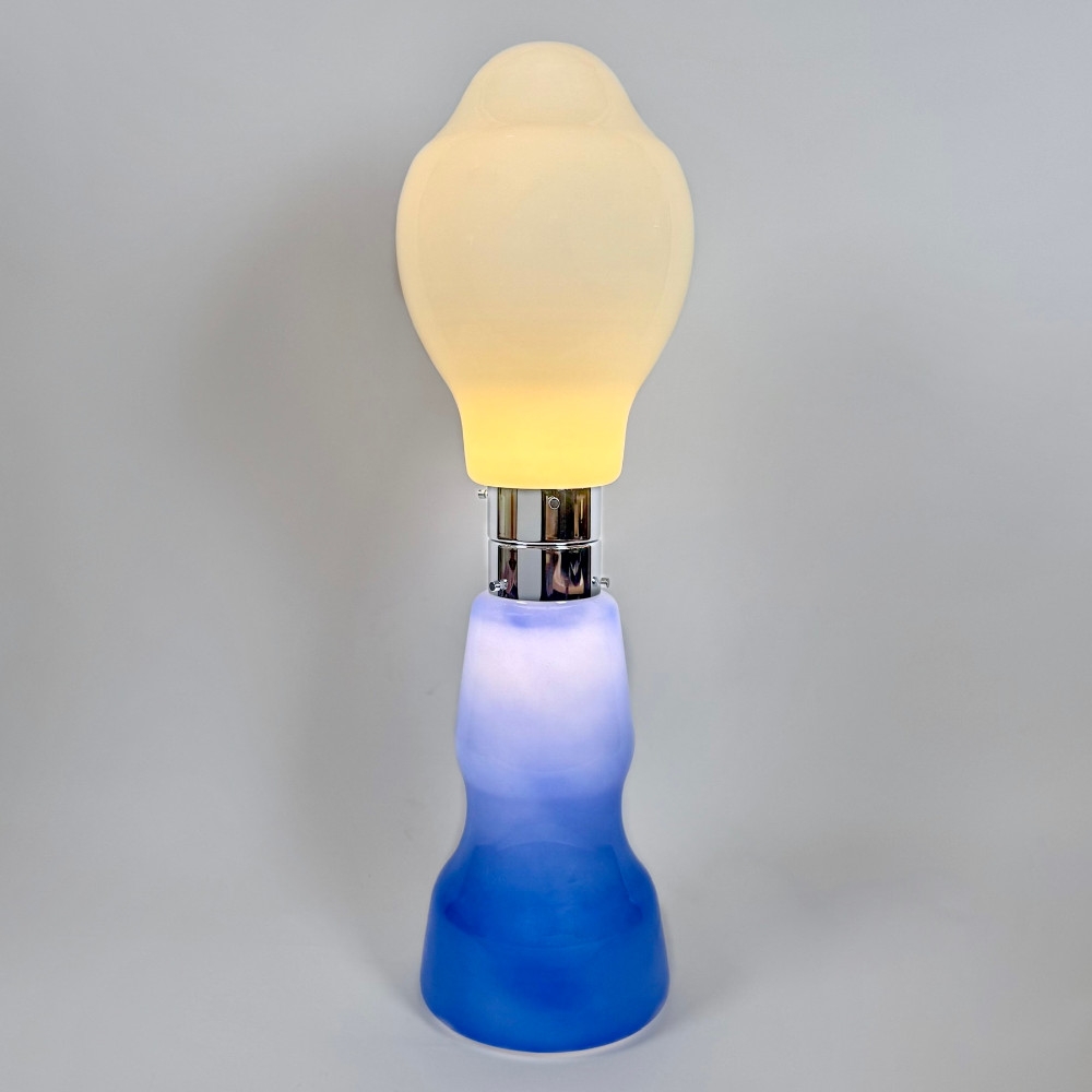 From the mid-1960s until the 1980s, Carlo Nason designed an entire generation of lamps for AV Mazzega. Under Gianni Bruno Mazzega’s direction, he enjoyed extraordinary creative freedom. He explored vetro in piastra, opaline, pulegoso, and layered glass, developing the poetic, diaphanous lighting effects that became his signature.